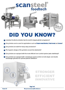 scansteel foodtech manufactures machinery and equipment as well as complete processing lines and solutions for the Global Food Processing Industry, Pet Food Industry and Processed Cheese Industry.  Feel free to download our  latest catalogues or please contact us if you have any questions.